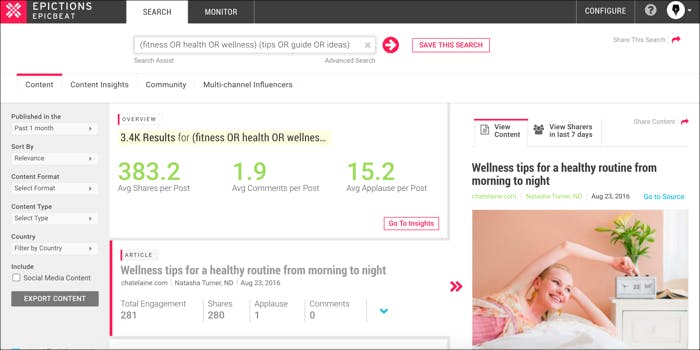 A free and incredibly powerful alternative to BuzzSumo, EpicBeat is a content marketing tool that finds you great content to study based on a particular search term. By displaying top performing content based on a certain subject, you’ll be able to see what works best with consumers in your niche and be inspired to produce great content.